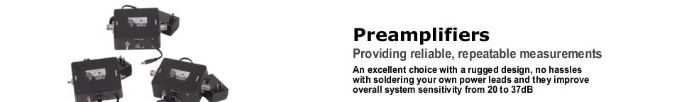 A.H. Systems' Preamplifier line is an excellent choice with a rugged design, no hassles with soldering your own power leads and they improve overall system sensitivity by at least 20 dB. All of A.H. Systems' Preamplifiers come with a 12-volt (or 15-volt) DC regulated power source. A low voltage indicator confidently allows you to power the amplifier with your own external 12-volt DC battery. This makes it a convenient choice for field measurements. See table below for amplifier specifications.