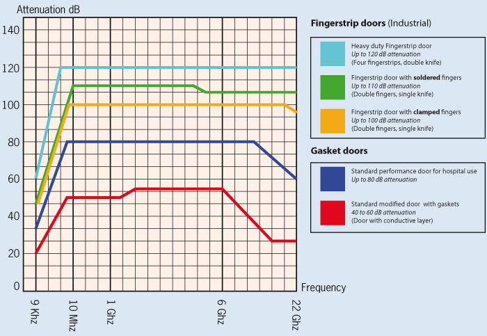 We are specialised in designing and manufacturing standard and custom doors for shielded rooms and Faraday cages. High performance single and double knife fingerstrip doors in sliding, swing and even double swing implementations belong to the possibilities. Our engineers will assist to find the best solution possible.
